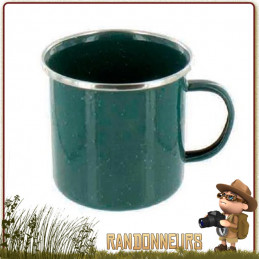 Tasse Émaillée Tôle Acier VERT Highlander - MUG de camping émaillé VERT. Retrouvez les sensations d'antan avec cette vaisselle acier émaillée Highlander, le bivouac bushcraft ou du far west d'excellence. Vaisselle tole émaillée pour le camping nature originel. Robustesse et facilité de nettoyage