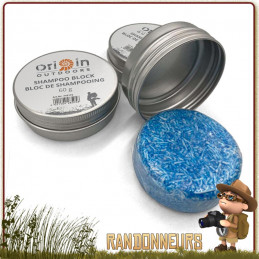 Shampoing Solide Concentré Origin Outdoor - Shampoing Solide Concentré Origin Outdoor en boite étanche idéal pour les voyages et la randonnée. En bloc de 60 grammes, sans silicone et vegan, il respectera vos cheveux. Facile à transporter et compatible pour le transport aérien.