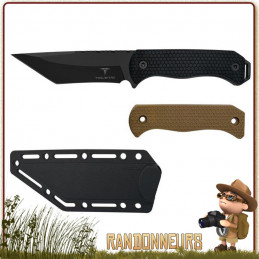 Poignard TERMINAL Takumitak - Poignard tactique Takumitak TERMINAL lame full tang 10.2 cm avec revêtement noir. Lot de deux plaquettes de manche interchangeable en FRN noir et Tan (Fibres de Nylon renforcées). Etui FRN avec clip compatible Molle pour un transport efficace et sécurisé. Poignard polyvalent pour la survie et le bushcraft.