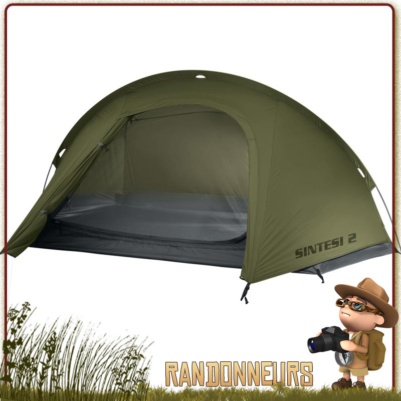 Tente Sintesi 2 places FERRINO - La tente dôme Ferrino Sintesi 2 Places est une tente ultra légère idéale pour le trekking et bikepacking. Non autoportante, de montage facile et rapide avec seulement un arceau, elle propose une grande entrée frontale avec moustiquaire et grande abside. Mono-paroi, cette tente trekking est d'un très bon rapport qualité / prix pour la randonnée de deux campeurs
